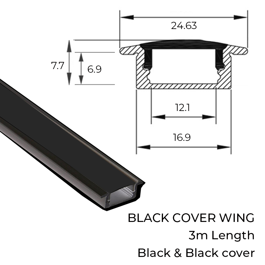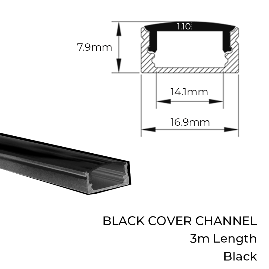 Black Cover Channel 3m Black + Black Diffuser