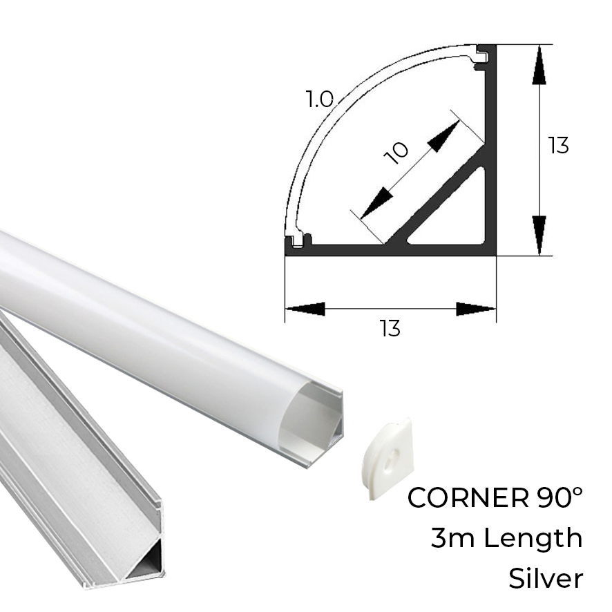 Corner 90º Channel 3m Silver