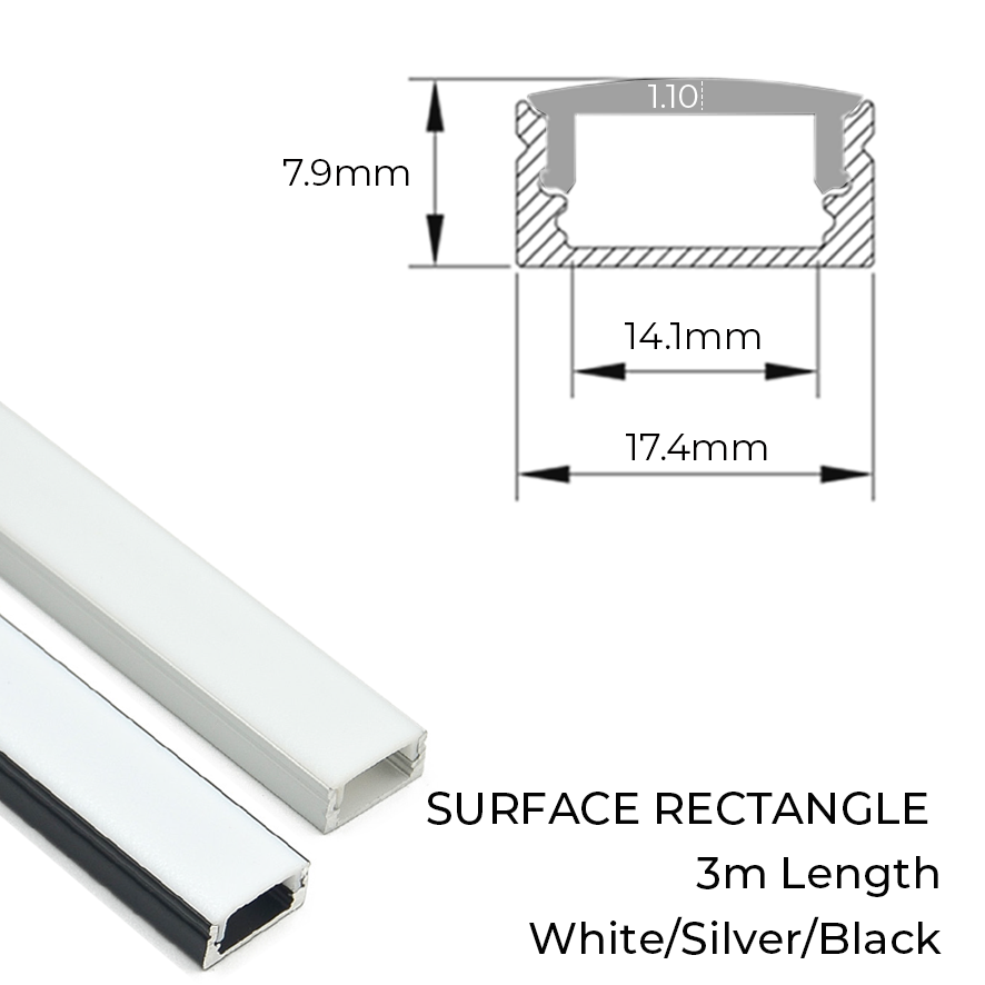 Surface Rectangular Channel 3m Silver, Black and White |